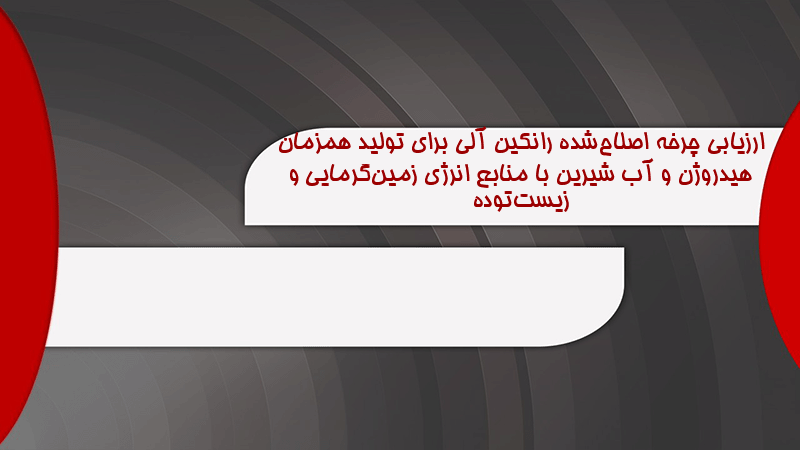 پاورپوینت ارزیابی چرخه اصلاحشده رانکین آلی برای تولید همزمان هیدروژن و آب شیرین با منابع انرژی زمینگرمایی و زیستتوده