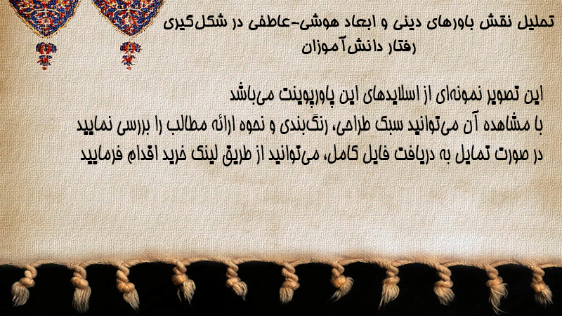 پاورپوینت تحلیل نقش باورهای دینی و ابعاد هوشی-عاطفی در شکلگیری رفتار دانشآموزان