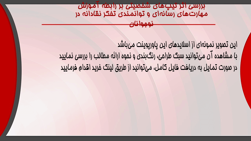 پاورپوینت بررسی اثر تیپهای شخصیتی بر رابطه آموزش مهارتهای رسانهای و توانمندی تفکر نقادانه در نوجوانان