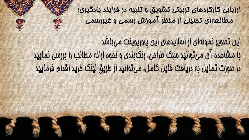 پاورپوینت ارزیابی کارکردهای تربیتی تشویق و تنبیه در فرایند یادگیری؛ مطالعهای تحلیلی از منظر آموزش رسمی و غیررسمی