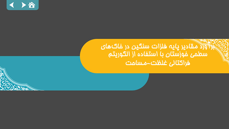 پاورپوینت برآورد مقادیر پایه فلزات سنگین در خاکهای سطحی خوزستان با استفاده از الگوریتم فراکتالی غلظت-مساحت