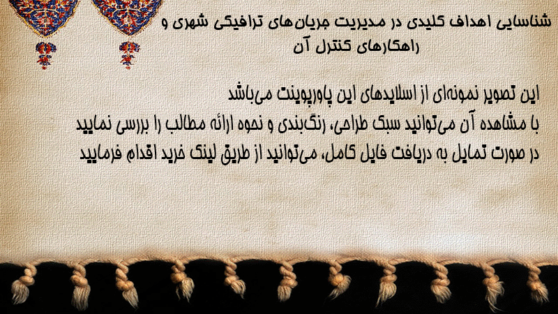 پاورپوینت شناسایی اهداف کلیدی در مدیریت جریانهای ترافیکی شهری و راهکارهای کنترل آن