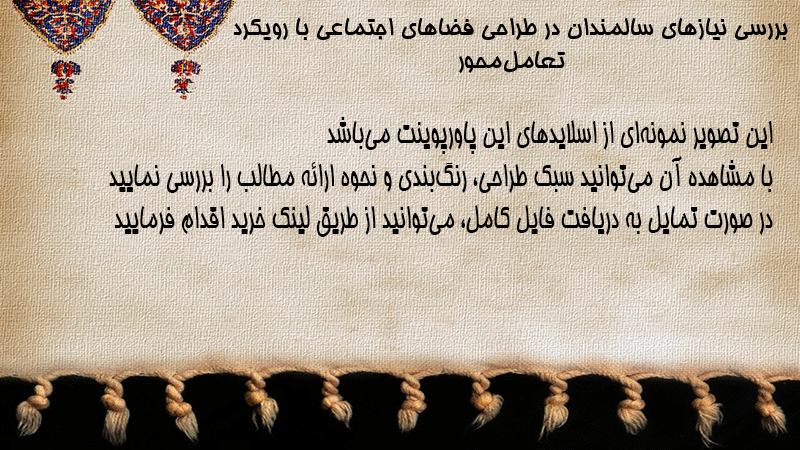 پاورپوینت بررسی نیازهای سالمندان در طراحی فضاهای اجتماعی با رویکرد تعاملمحور