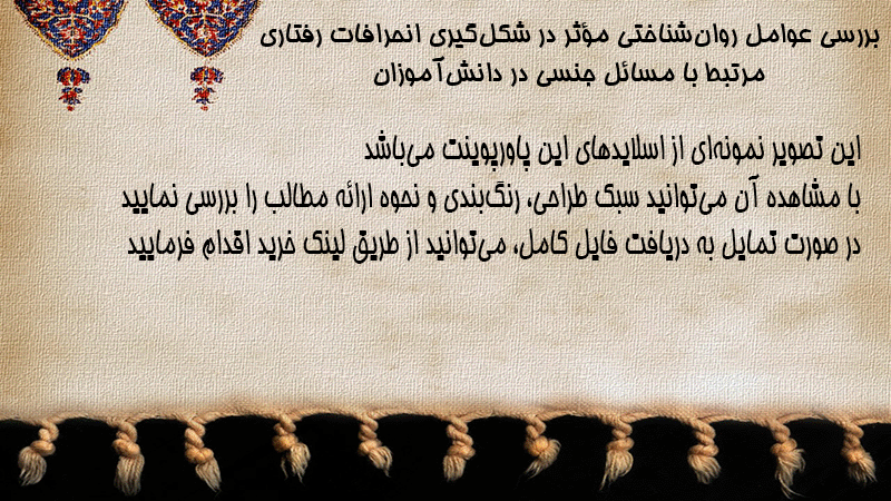 پاورپوینت بررسی عوامل روانشناختی مؤثر در شکلگیری انحرافات رفتاری مرتبط با مسائل جنسی در دانشآموزان