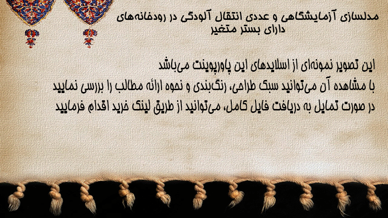 پاورپوینت مدلسازی آزمایشگاهی و عددی انتقال آلودگی در رودخانههای دارای بستر متغیر