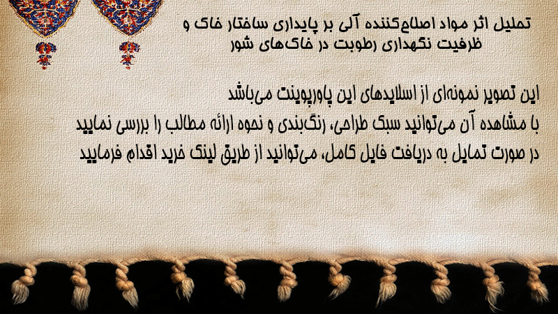 پاورپوینت تحلیل اثر مواد اصلاحکننده آلی بر پایداری ساختار خاک و ظرفیت نگهداری رطوبت در خاکهای شور