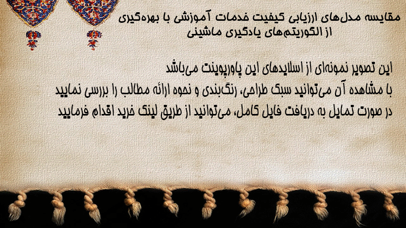 پاورپوینت مقایسه مدلهای ارزیابی کیفیت خدمات آموزشی با بهرهگیری از الگوریتمهای یادگیری ماشینی