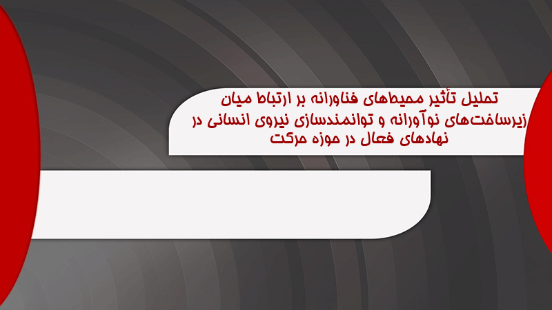 پاورپوینت تحلیل تأثیر محیطهای فناورانه بر ارتباط میان زیرساختهای نوآورانه و توانمندسازی نیروی انسانی در نهادهای فعال در حوزه حرکت