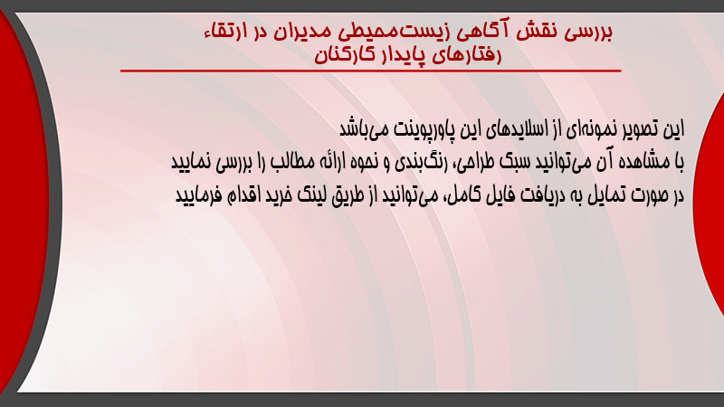پاورپوینت بررسی نقش آگاهی زیستمحیطی مدیران در ارتقاء رفتارهای پایدار کارکنان
