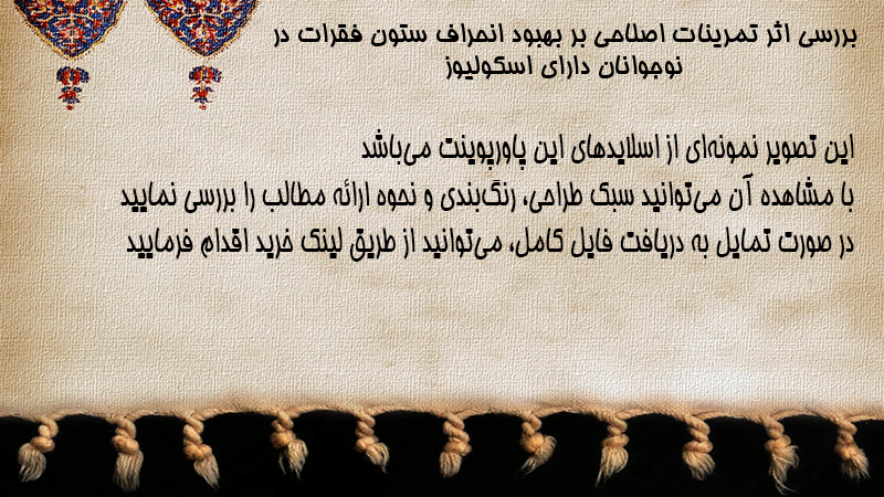 پاورپوینت بررسی اثر تمرینات اصلاحی بر بهبود انحراف ستون فقرات در نوجوانان دارای اسکولیوز