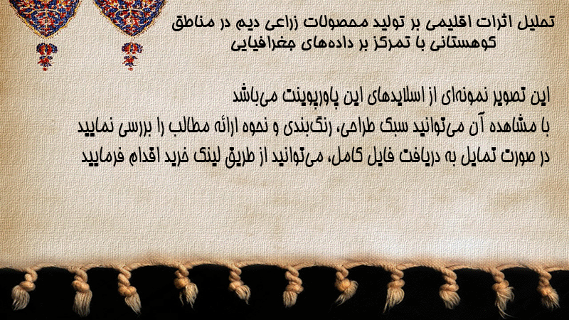 پاورپوینت تحلیل اثرات اقلیمی بر تولید محصولات زراعی دیم در مناطق کوهستانی با تمرکز بر دادههای جغرافیایی