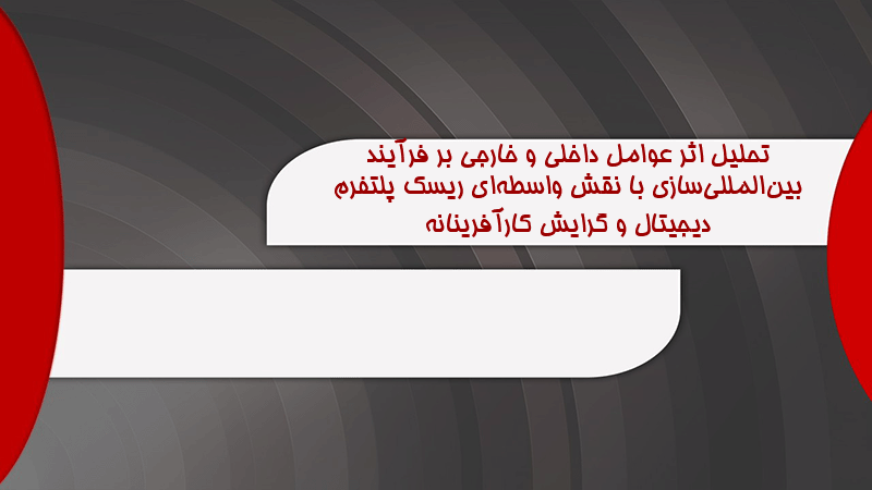 پاورپوینت تحلیل اثر عوامل داخلی و خارجی بر فرآیند بینالمللیسازی با نقش واسطهای ریسک پلتفرم دیجیتال و گرایش کارآفرینانه