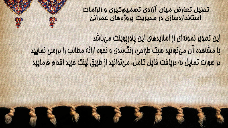 پاورپوینت تحلیل تعارض میان آزادی تصمیمگیری و الزامات استانداردسازی در مدیریت پروژههای عمرانی