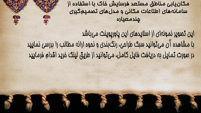 پاورپوینت مکانیابی مناطق مستعد فرسایش خاک با استفاده از سامانههای اطلاعات مکانی و مدلهای تصمیمگیری چندمعیاره