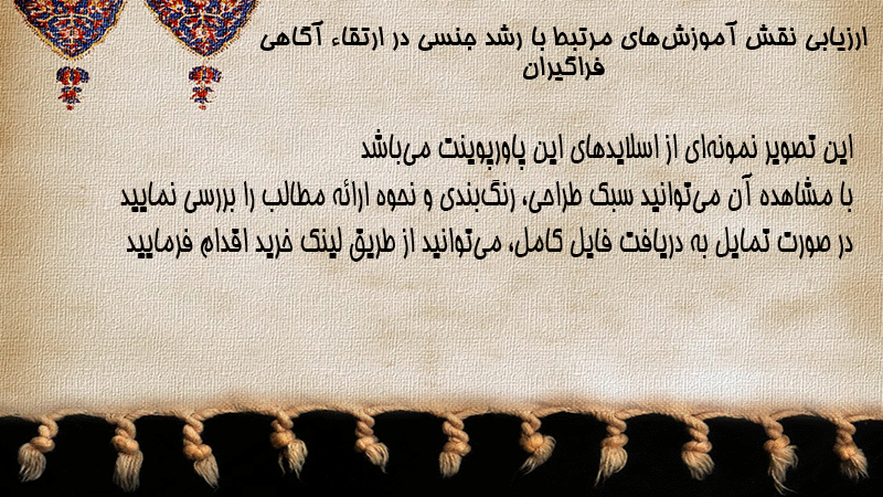 پاورپوینت ارزیابی نقش آموزشهای مرتبط با رشد جنسی در ارتقاء آگاهی فراگیران