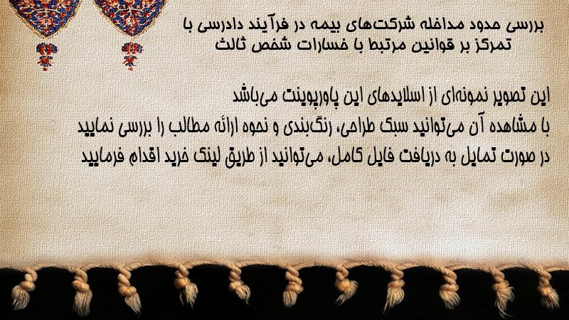 پاورپوینت بررسی حدود مداخله شرکتهای بیمه در فرآیند دادرسی با تمرکز بر قوانین مرتبط با خسارات شخص ثالث