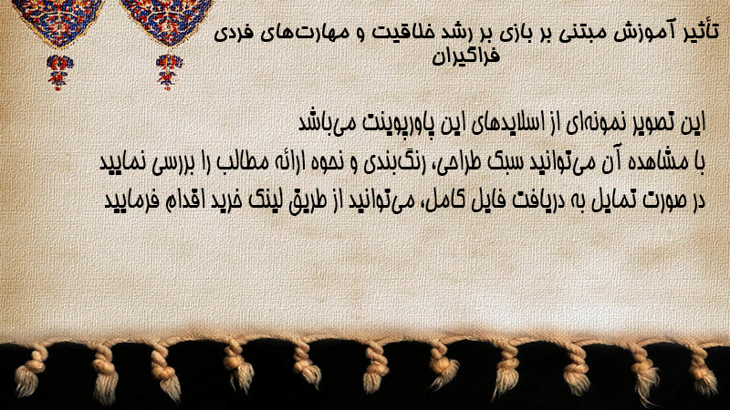 پاورپوینت تأثیر آموزش مبتنی بر بازی بر رشد خلاقیت و مهارتهای فردی فراگیران