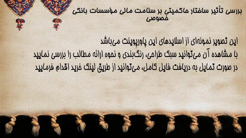 پاورپوینت بررسی تأثیر ساختار حاکمیتی بر سلامت مالی مؤسسات بانکی خصوصی