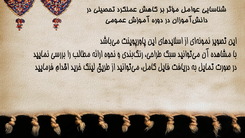 پاورپوینت شناسایی عوامل مؤثر بر کاهش عملکرد تحصیلی در دانشآموزان در دوره آموزش عمومی