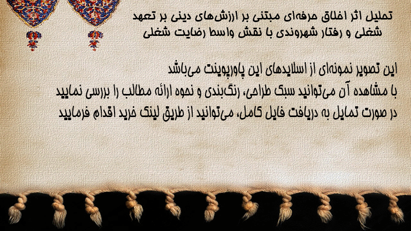 پاورپوینت تحلیل اثر اخلاق حرفهای مبتنی بر ارزشهای دینی بر تعهد شغلی و رفتار شهروندی با نقش واسط رضایت شغلی