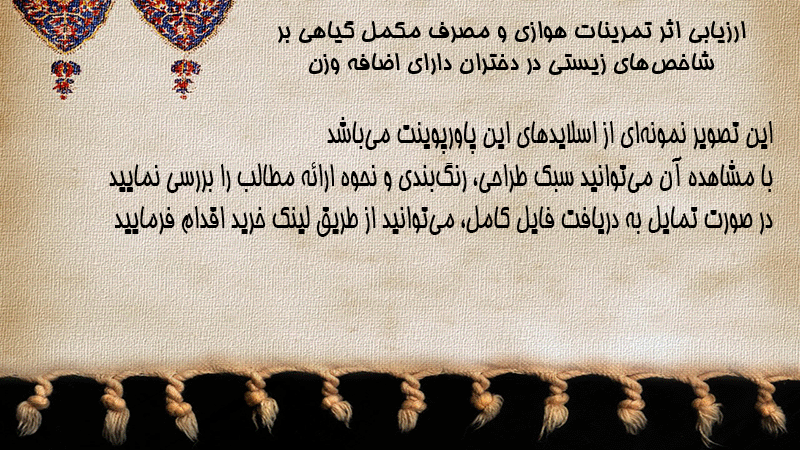 پاورپوینت ارزیابی اثر تمرینات هوازی و مصرف مکمل گیاهی بر شاخصهای زیستی در دختران دارای اضافه وزن