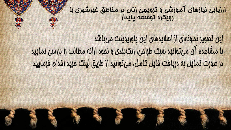 پاورپوینت ارزیابی نیازهای آموزشی و ترویجی زنان در مناطق غیرشهری با رویکرد توسعه پایدار