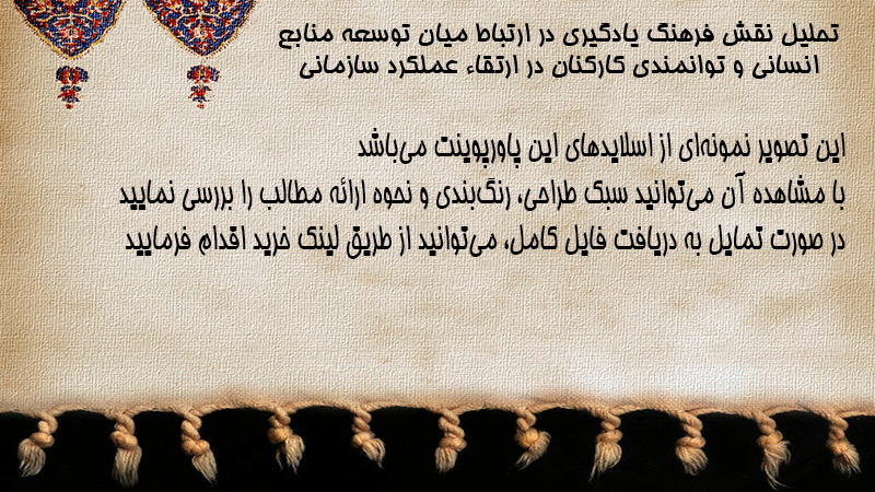 پاورپوینت تحلیل نقش فرهنگ یادگیری در ارتباط میان توسعه منابع انسانی و توانمندی کارکنان در ارتقاء عملکرد سازمانی