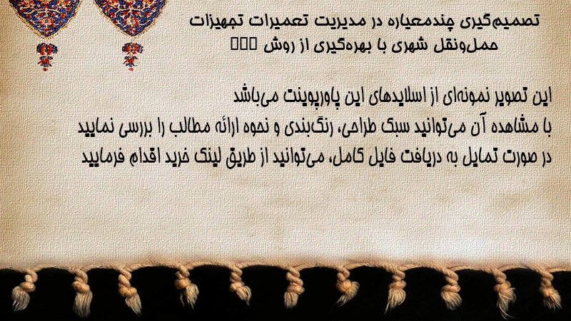 پاورپوینت تصمیمگیری چندمعیاره در مدیریت تعمیرات تجهیزات حملونقل شهری با بهرهگیری از روش AHP