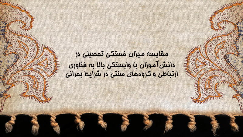 پاورپوینت مقایسه میزان خستگی تحصیلی در دانشآموزان با وابستگی بالا به فناوری ارتباطی و گروههای سنتی در شرایط بحرانی