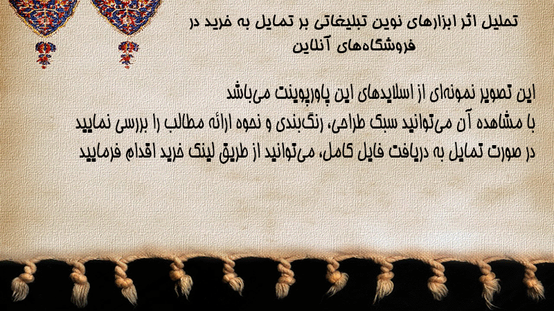 پاورپوینت تحلیل اثر ابزارهای نوین تبلیغاتی بر تمایل به خرید در فروشگاههای آنلاین