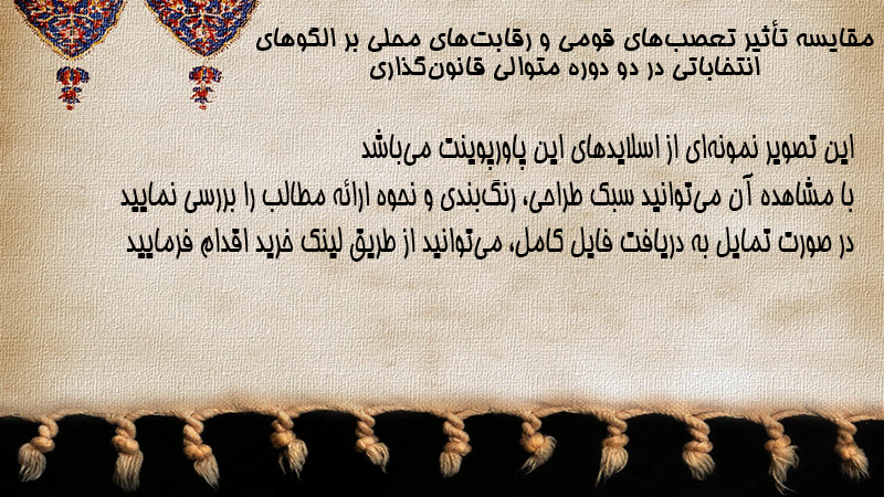 پاورپوینت مقایسه تأثیر تعصبهای قومی و رقابتهای محلی بر الگوهای انتخاباتی در دو دوره متوالی قانونگذاری