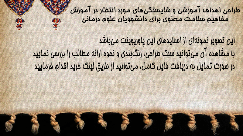 پاورپوینت طراحی اهداف آموزشی و شایستگیهای مورد انتظار در آموزش مفاهیم سلامت معنوی برای دانشجویان علوم درمانی
