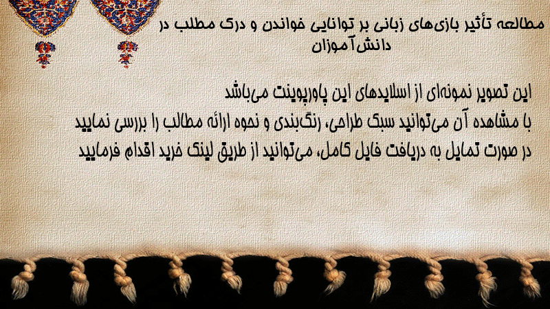 پاورپوینت مطالعه تأثیر بازیهای زبانی بر توانایی خواندن و درک مطلب در دانشآموزان