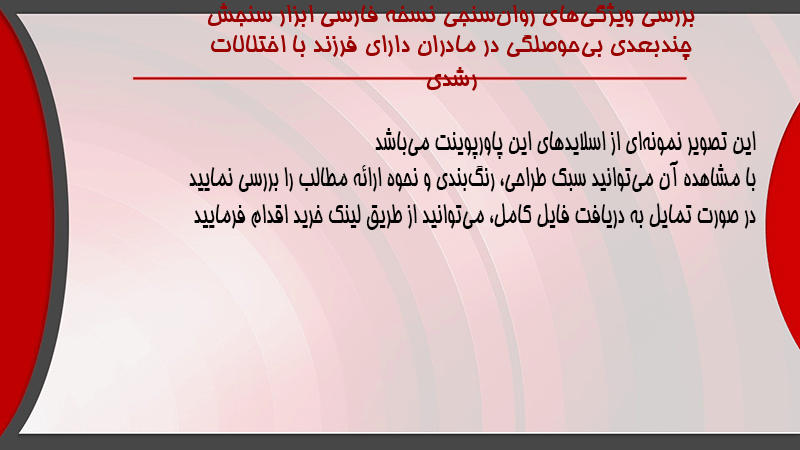 پاورپوینت بررسی ویژگیهای روانسنجی نسخه فارسی ابزار سنجش چندبعدی بیحوصلگی در مادران دارای فرزند با اختلالات رشدی