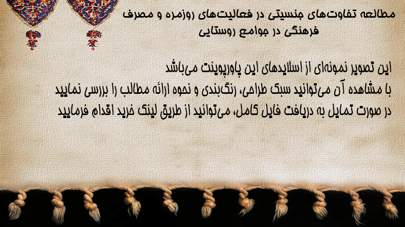 پاورپوینت مطالعه تفاوتهای جنسیتی در فعالیتهای روزمره و مصرف فرهنگی در جوامع روستایی