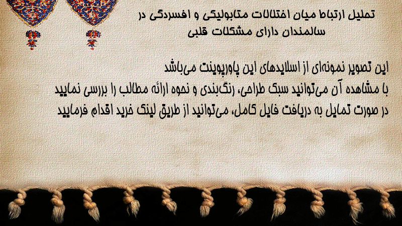 پاورپوینت تحلیل ارتباط میان اختلالات متابولیکی و افسردگی در سالمندان دارای مشکلات قلبی