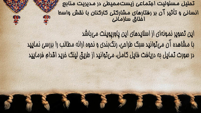 پاورپوینت تحلیل مسئولیت اجتماعی زیستمحیطی در مدیریت منابع انسانی و تأثیر آن بر رفتارهای مشارکتی کارکنان با نقش واسط اخلاق سازمانی