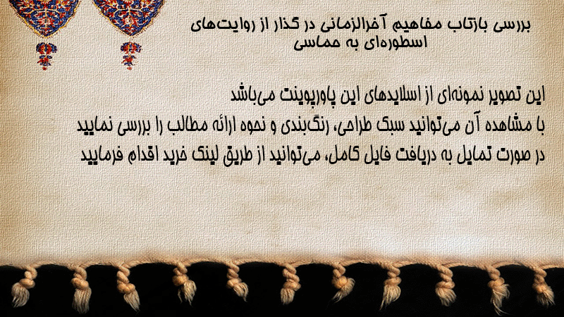 پاورپوینت بررسی بازتاب مفاهیم آخرالزمانی در گذار از روایتهای اسطورهای به حماسی