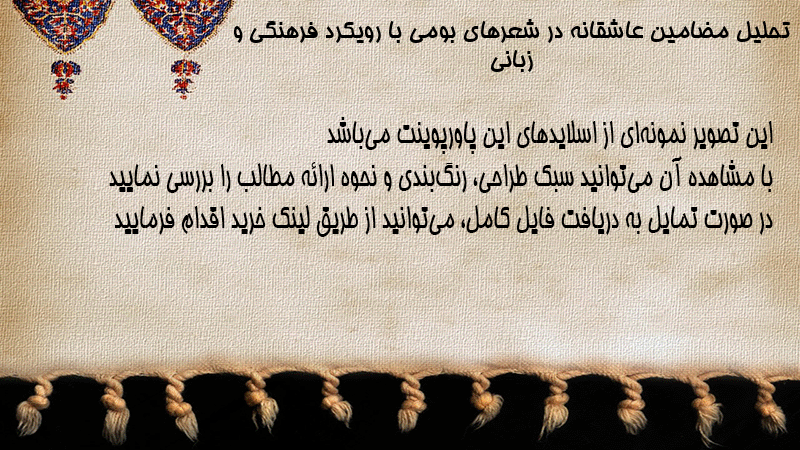 پاورپوینت تحلیل مضامین عاشقانه در شعرهای بومی با رویکرد فرهنگی و زبانی