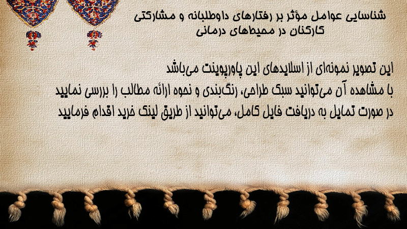 پاورپوینت شناسایی عوامل مؤثر بر رفتارهای داوطلبانه و مشارکتی کارکنان در محیطهای درمانی