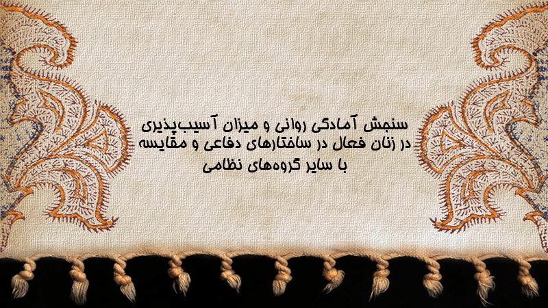پاورپوینت سنجش آمادگی روانی و میزان آسیبپذیری در زنان فعال در ساختارهای دفاعی و مقایسه با سایر گروههای نظامی