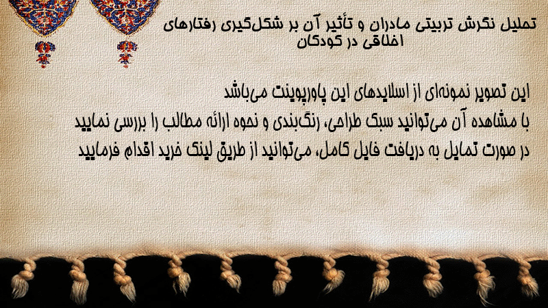 پاورپوینت تحلیل نگرش تربیتی مادران و تأثیر آن بر شکلگیری رفتارهای اخلاقی در کودکان