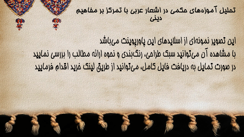 پاورپوینت تحلیل آموزههای حکمی در اشعار عربی با تمرکز بر مفاهیم دینی