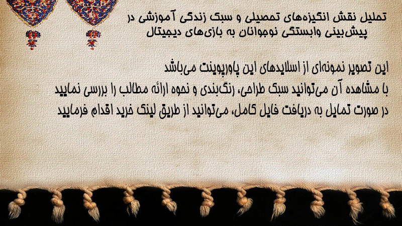 پاورپوینت تحلیل نقش انگیزههای تحصیلی و سبک زندگی آموزشی در پیشبینی وابستگی نوجوانان به بازیهای دیجیتال