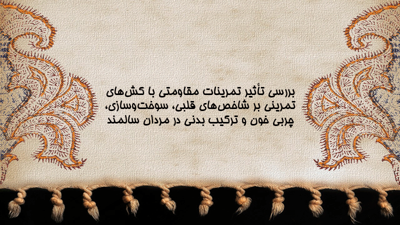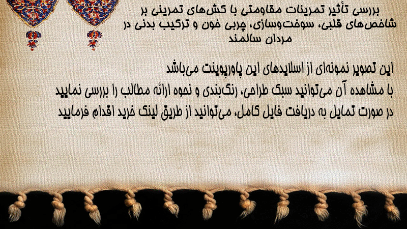 پاورپوینت بررسی تأثیر تمرینات مقاومتی با کشهای تمرینی بر شاخصهای قلبی، سوختوسازی، چربی خون و ترکیب بدنی در مردان سالمند