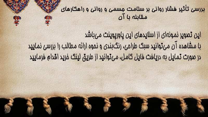 پاورپوینت بررسی تأثیر فشار روانی بر سلامت جسمی و روانی و راهکارهای مقابله با آن