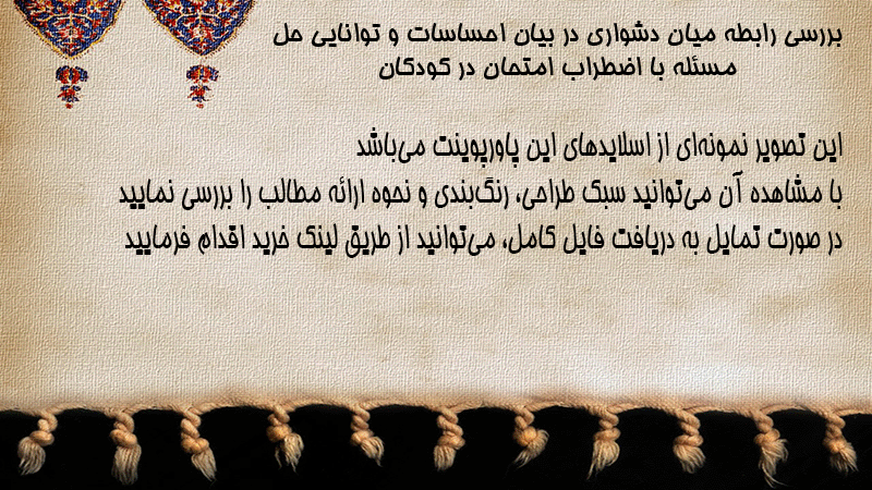 پاورپوینت بررسی رابطه میان دشواری در بیان احساسات و توانایی حل مسئله با اضطراب امتحان در کودکان