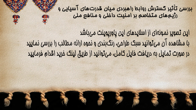 پاورپوینت بررسی تأثیر گسترش روابط راهبردی میان قدرتهای آسیایی و رژیمهای متخاصم بر امنیت داخلی و منافع ملی