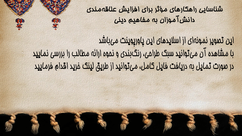 پاورپوینت شناسایی راهکارهای مؤثر برای افزایش علاقهمندی دانشآموزان به مفاهیم دینی