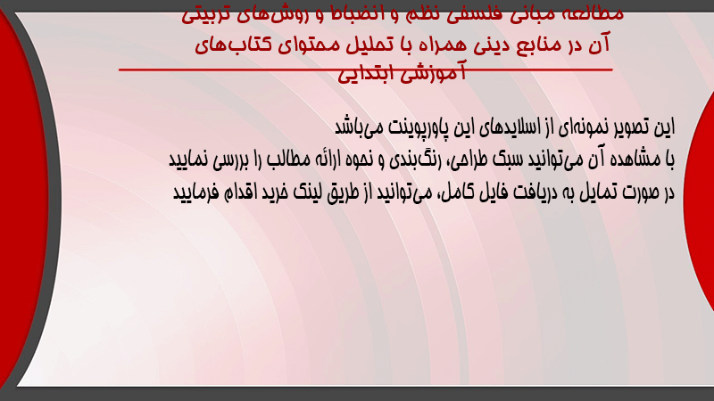 پاورپوینت مطالعه مبانی فلسفی نظم و انضباط و روشهای تربیتی آن در منابع دینی همراه با تحلیل محتوای کتابهای آموزشی ابتدایی